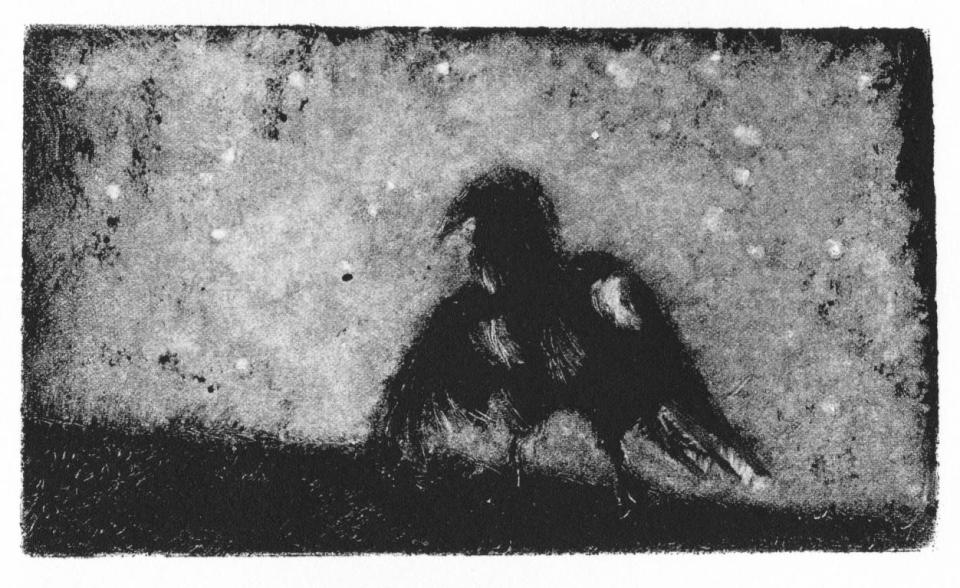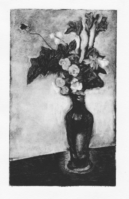Le travail du monotype est une sculpture, un modelage de l’ombre. L’encre grasse sur la surface de verre offre une mine de sensations tactiles. Sur le support neutre, l’outil (pinceau, doigt ou stylet) transmet, telle l’aiguille du gramophone, toutes les vibrations de cette matière ombreuse. Tout commence par des traces d’obscurité qui charpentent peu à peu l’espace, puis des pénombres se tissent et s’entrelacent. Vient ensuite le temps du modelage, de fouissement au sein de l’ombre. Elle se replie, s’allège, s’ouvre, entre en vibration pour contenir la lumière.
