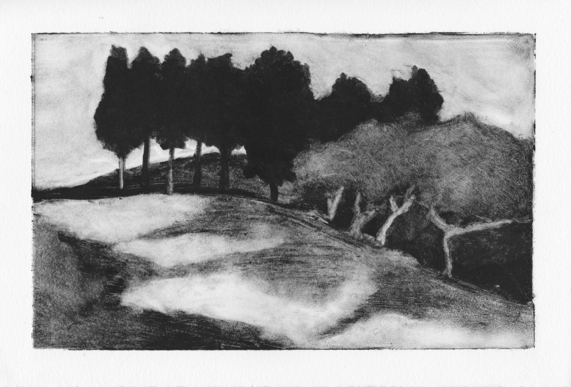 P.LAURIN, « sombra y luz », 2019, 55 x 78 cm, monotype sur papier Fabriano Rosaspina