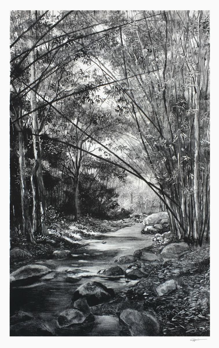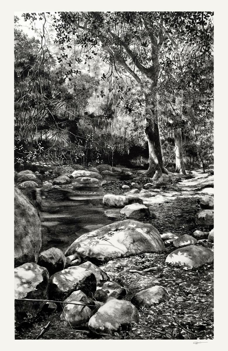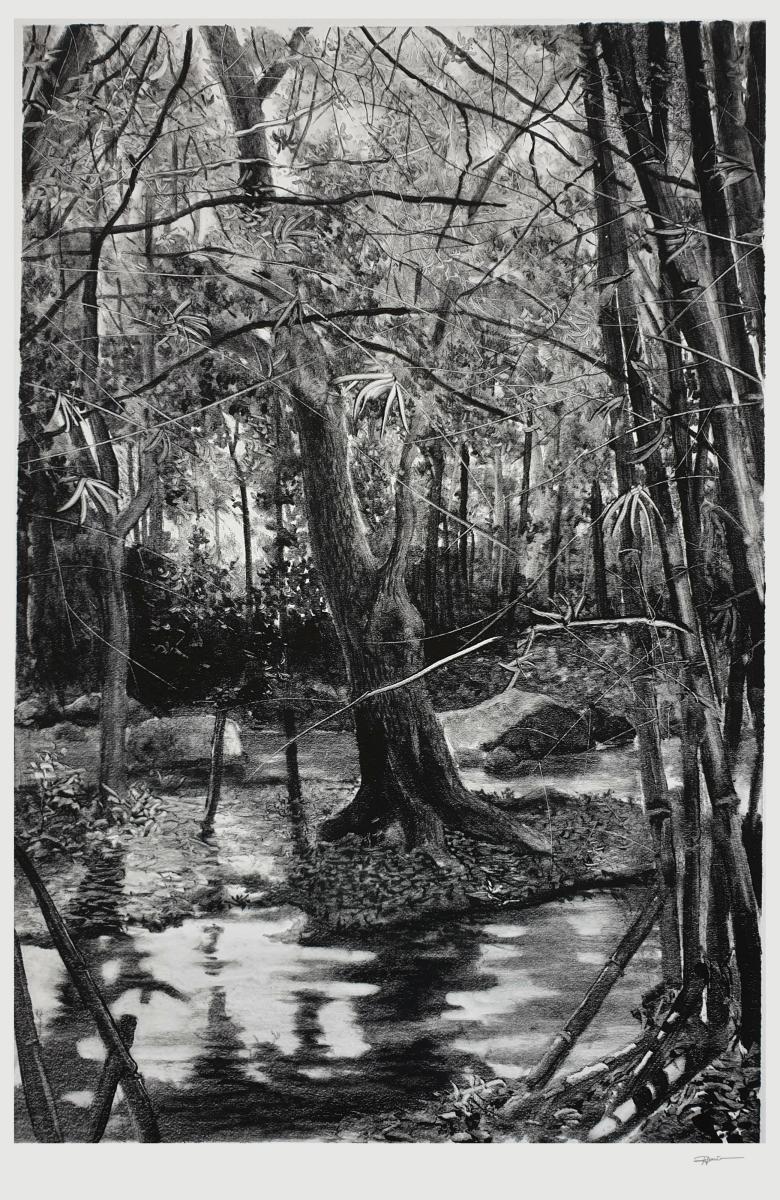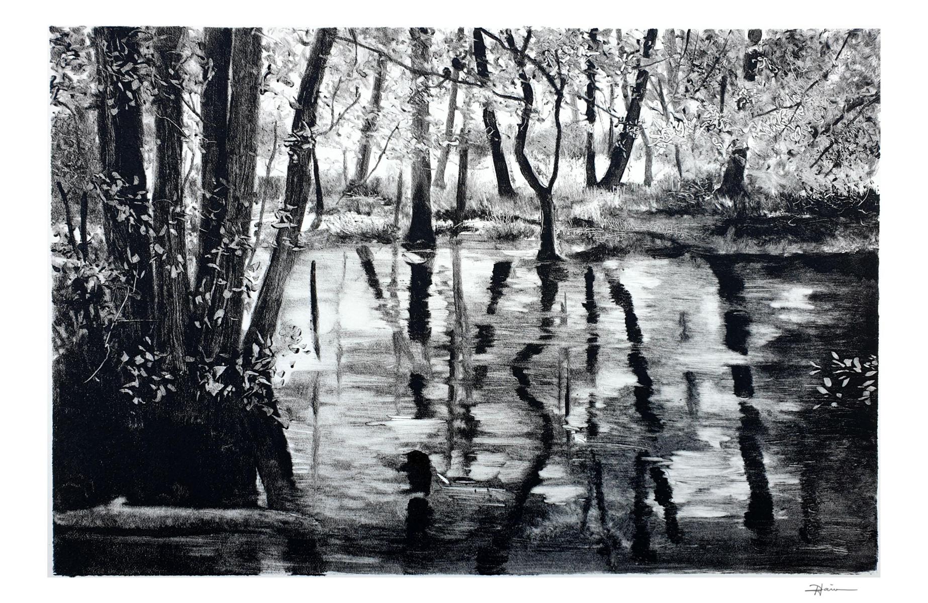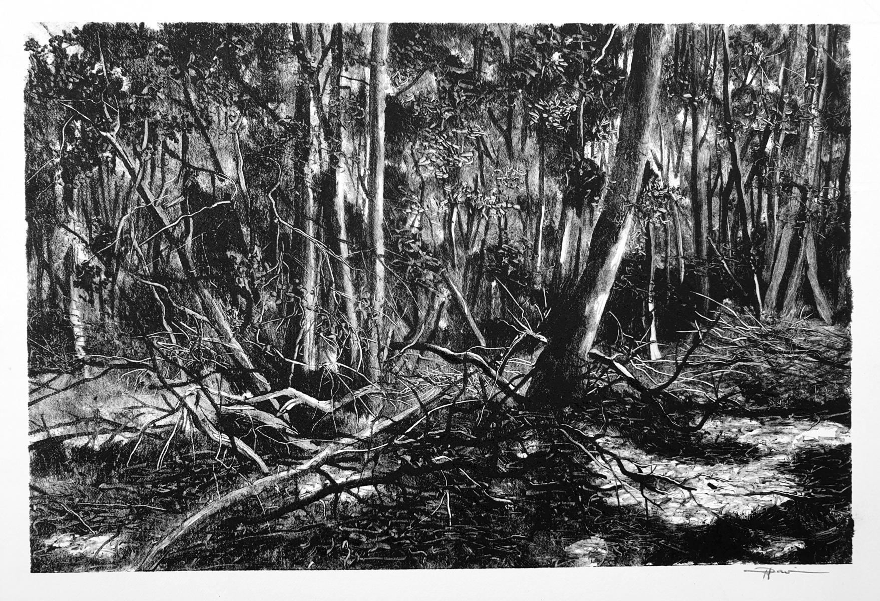 2020… année singulière, le confinement en raison du Covid19 rend inaccessible les espaces naturels. Alors l’atelier devient refuge, un lieu duquel j’explore de nouveaux espaces, réminiscences de territoires parcourus, respirés, écoutés….
