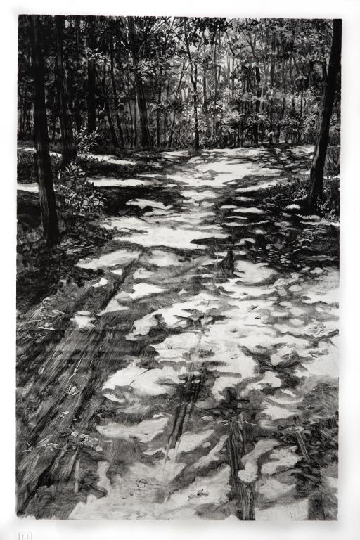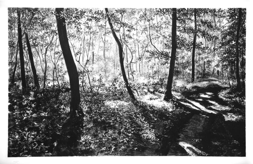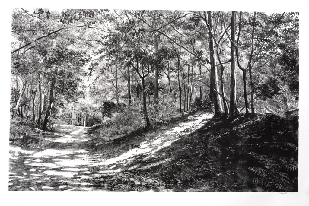 Actuellement, je revisite des espaces sylvestres dans lesquels j’ai cheminé, cathédrales végétales où ombres et lumières s’entrelacent dans la profondeur des sous-bois.